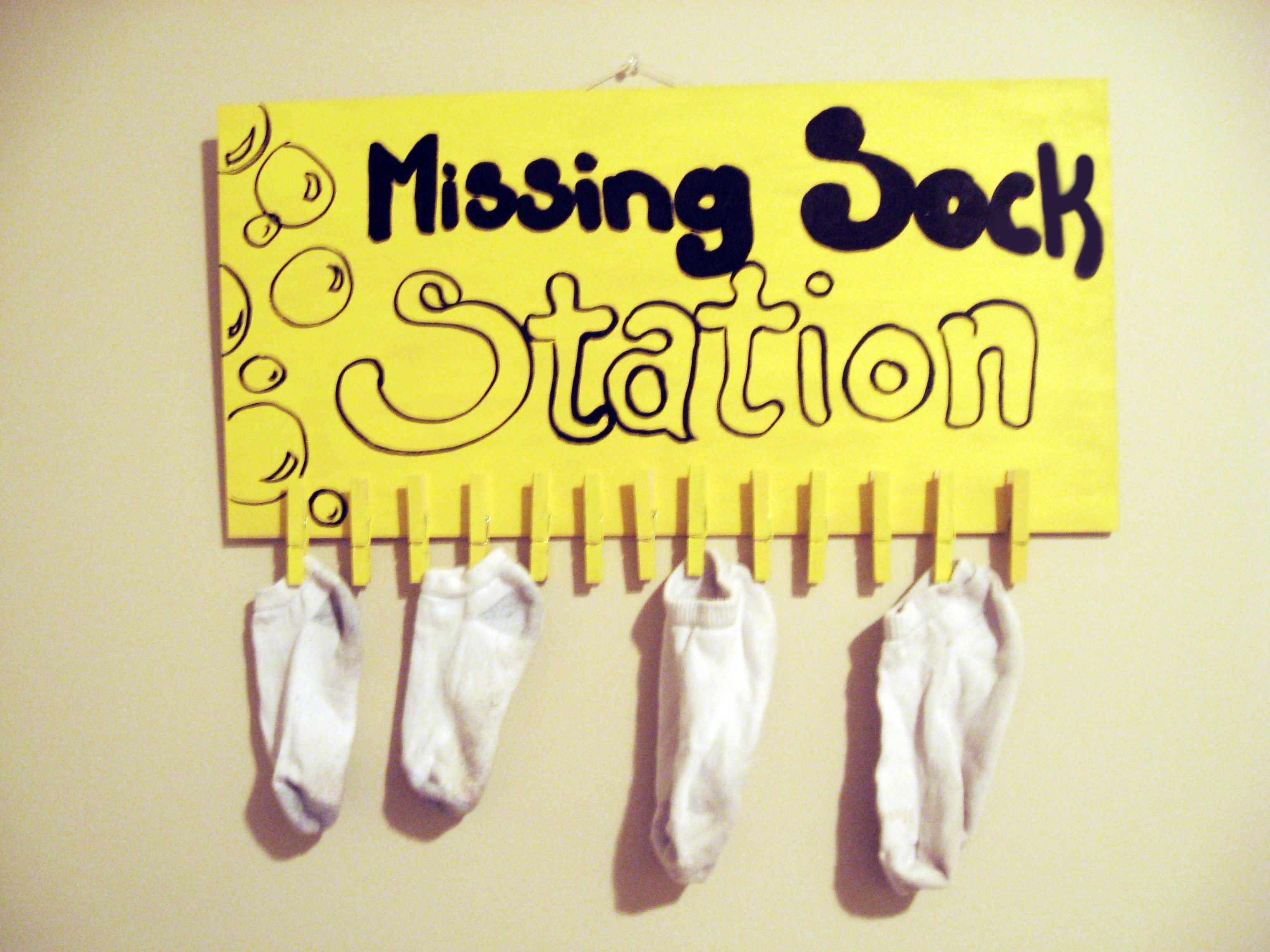 This is probably the most used craft I will ever make. I lose my socks all the time. Seriously, I am pretty sure that dryer lint is the remains of my missing socks. So, my solution is the Missing Sock Station.