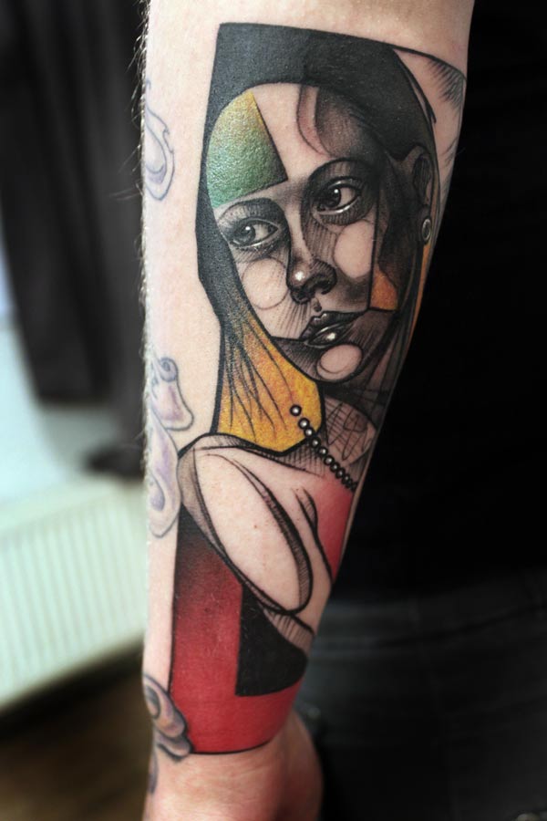 Peter Aurisch is a tattoo artist in Berlin. His geometric style consists of fine, direct lines and bold colors. I don’t think I would put this on my body but I sure do like looking. Beautiful work!