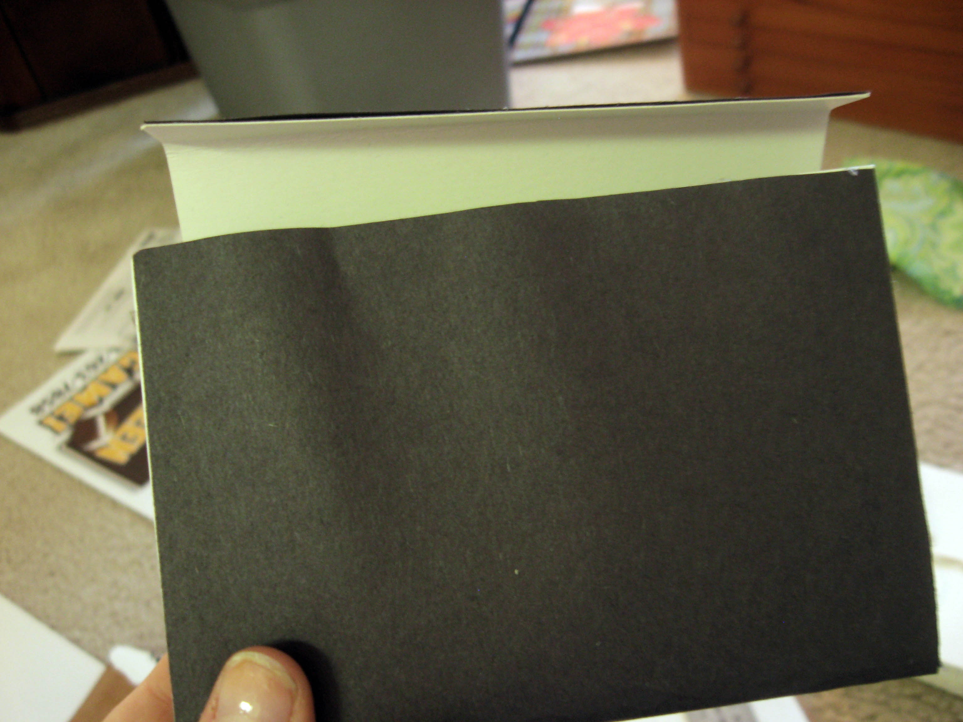 Use your construction paper to make a fan shape like the above photo. You are going to want two pieces. These are going to fit inside the edges of your box so measure them accordingly.