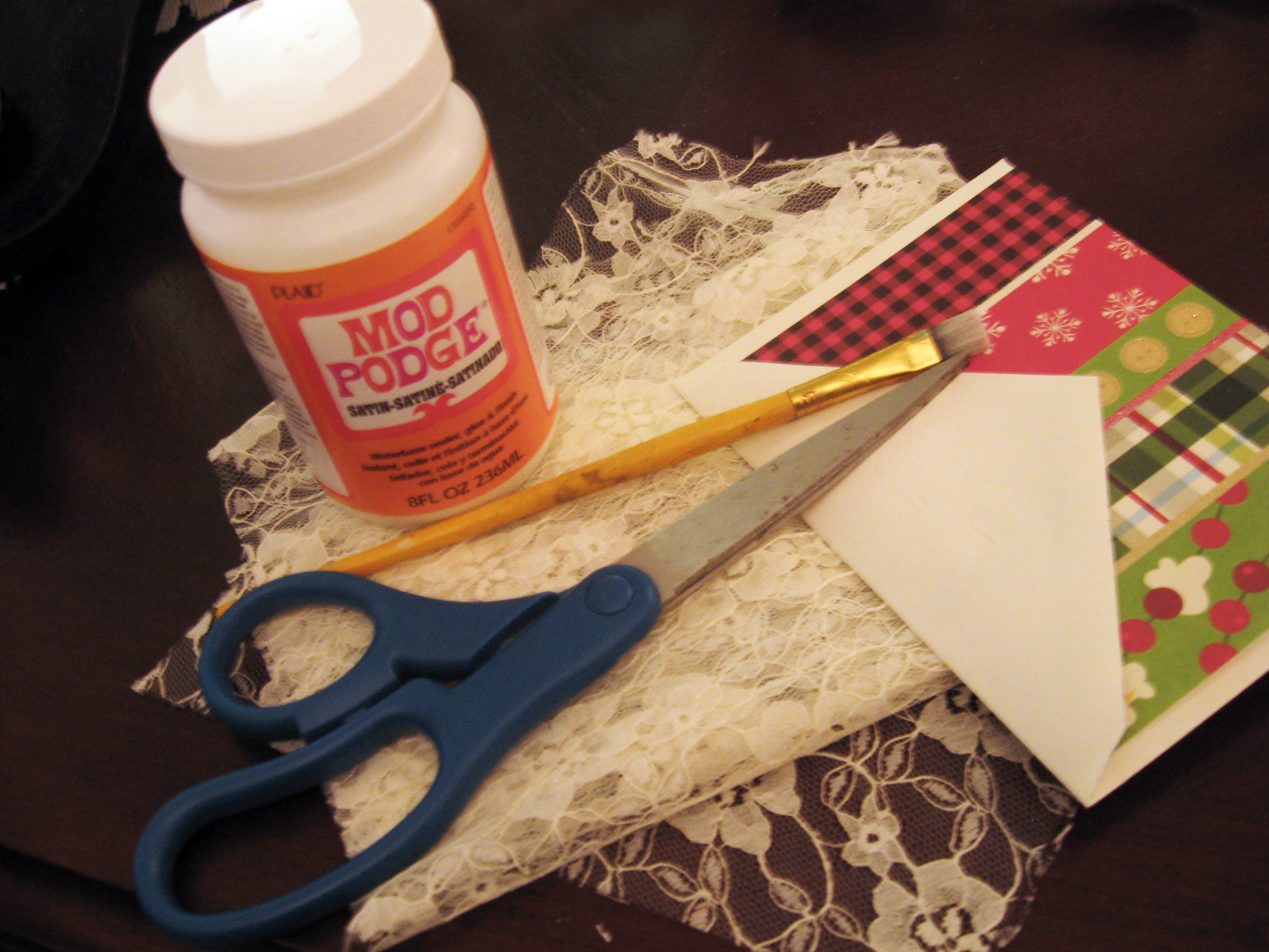 Open up your envelope to use as a pattern. Cut the lace to the shape of the envelope.
