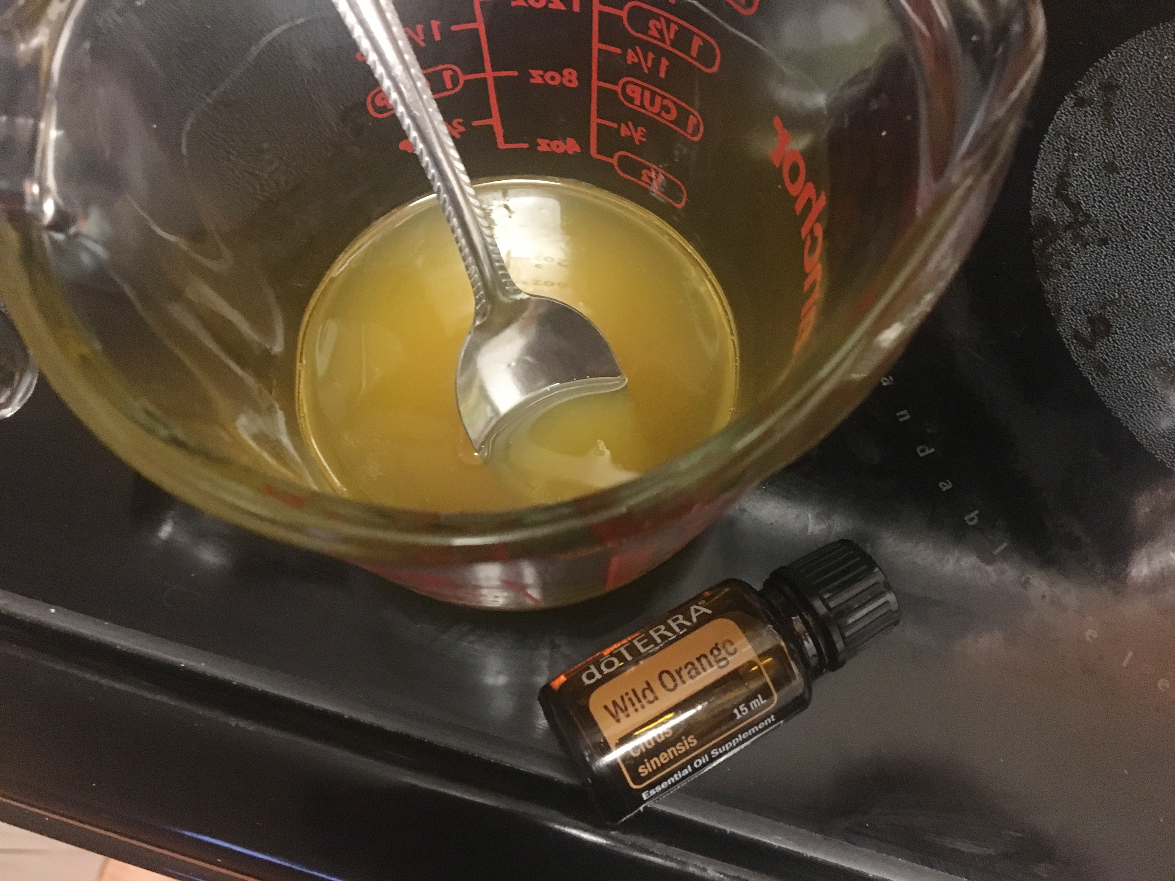 This time, I wanted something citrusy but also kind of creamy, so I chose a combination of vanilla and orange to get an orange cream flavor. It turned out well. I even got some human testers to be sure. (When you’re melting and smelling the oils for half an hour, it can mess with your ability to assess it properly.)