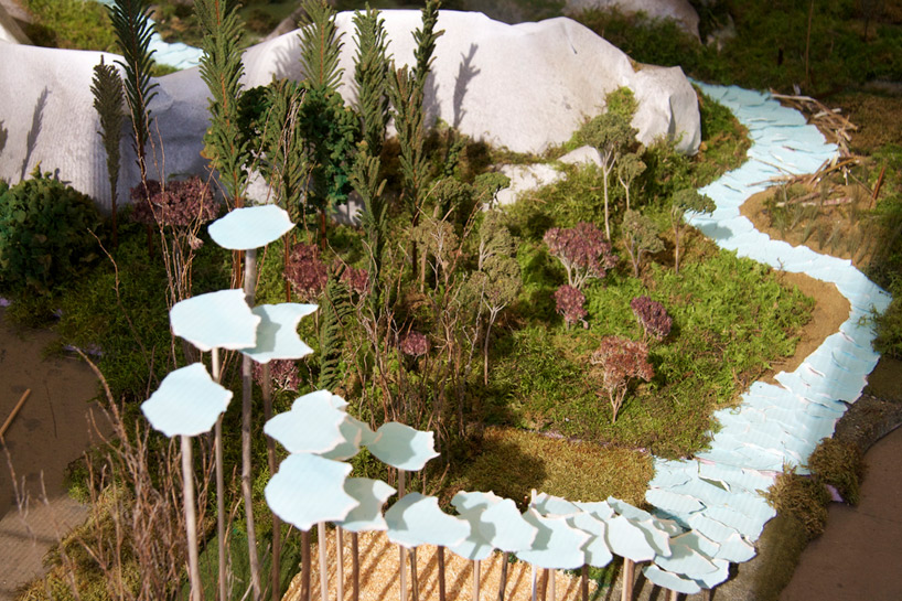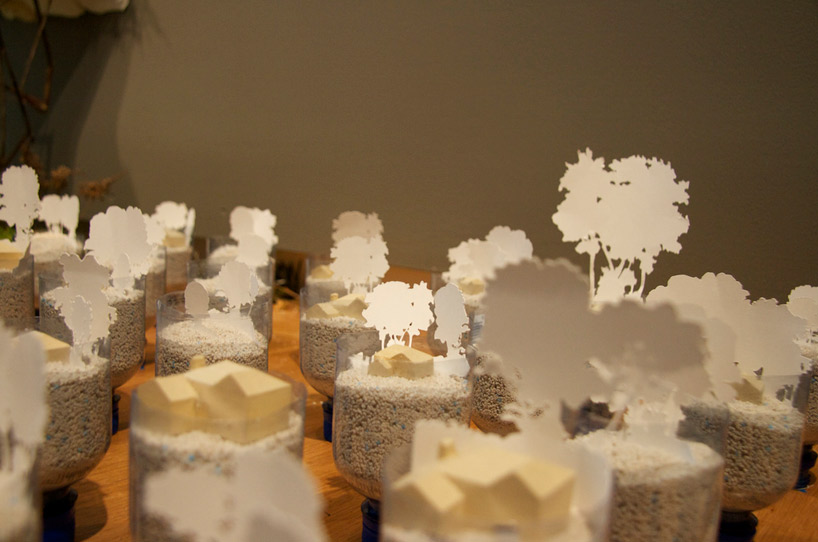 euclide created several dioramas constructed from found trash such as plastic, foam, sponge, and fertilizer he accrued while walking in a park.