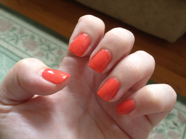I did a base layer of mango, because it seemed like that was the thing to do. This nail polish is from Forever 21. I bought it because it’s the only thing from there I can wear that doesn’t make me look fat.