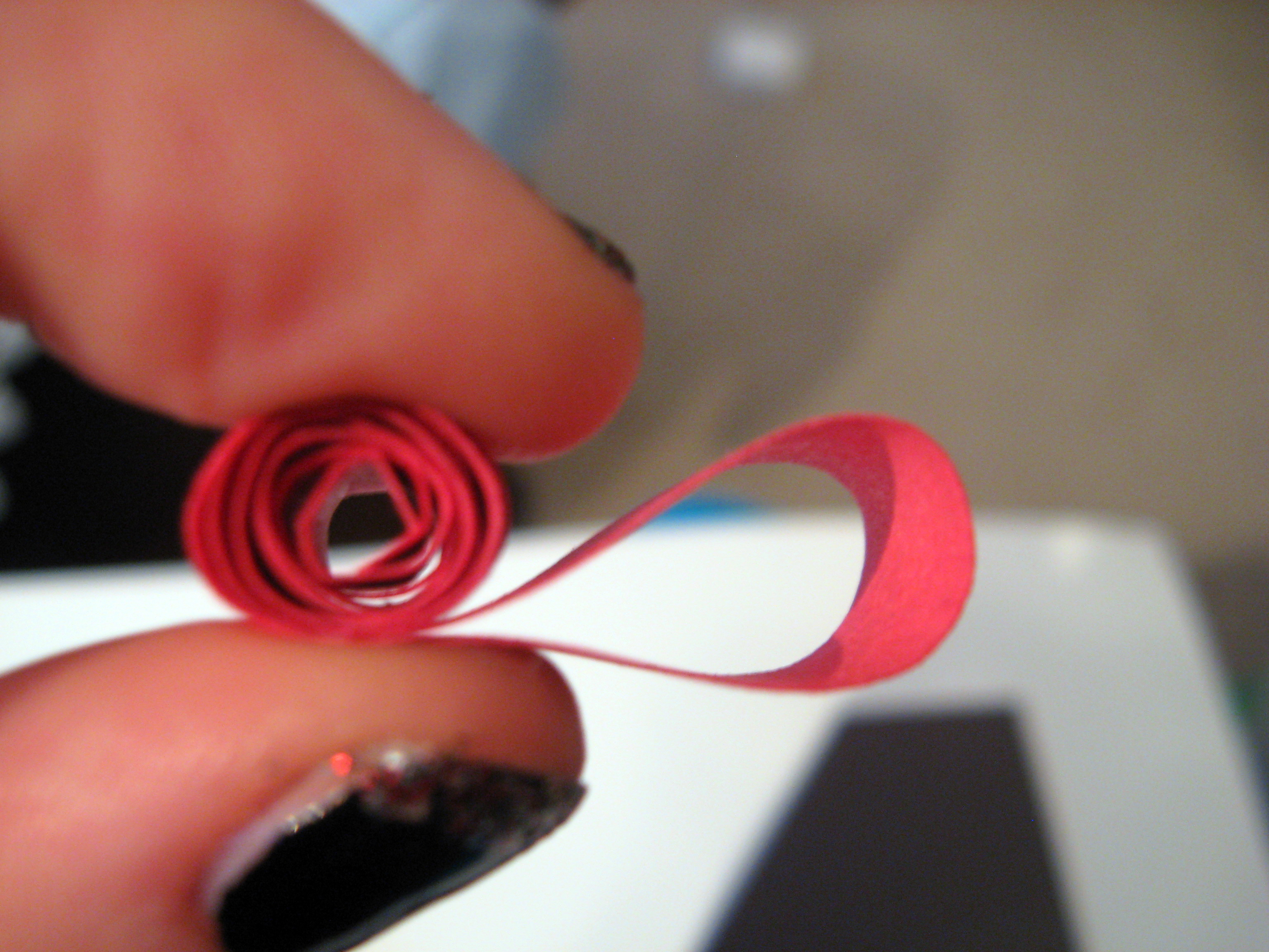 Choose a strip of colored construction paper and wrap it tightly around a pencil or other slender object. You may also use your fingers to wrap the paper instead of the pencil for a tighter swirl.